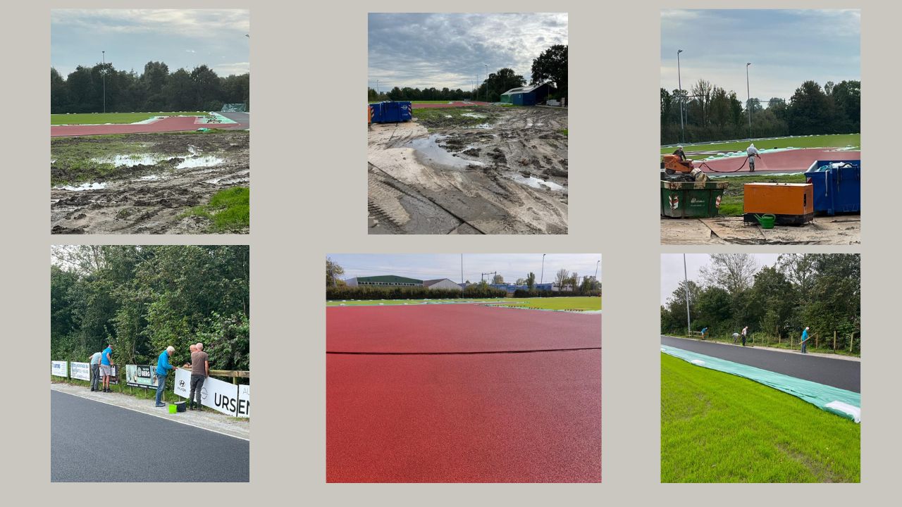 Wat de baan betreft is het wachten nu op het aanbrengen van de belijning. Dat is nog een heel precies werkje en staat nu gepland voor week 42. De planning voor de komende weken nog even op een rijtje:
